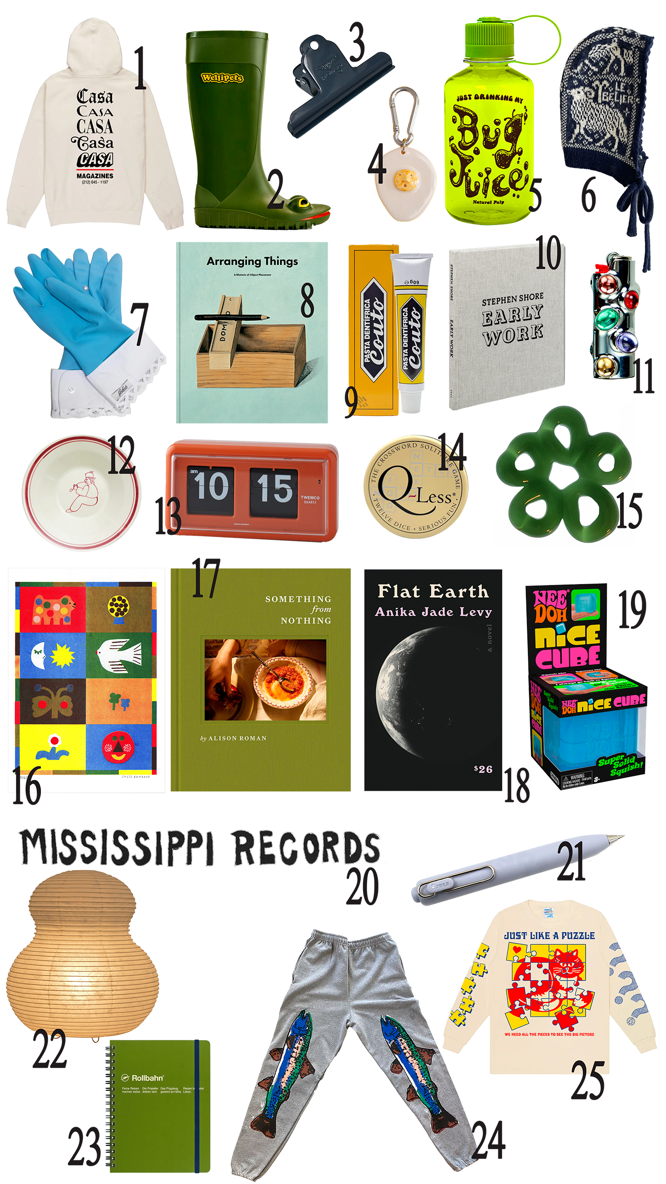 - Bug Juice Waterbottle, Goodbye Press, $23.00 - Hydration is a year-round concern and there may be no better accessory than a waterbottle. This one is the perfect size for everyday use with the additional perk of a great design.