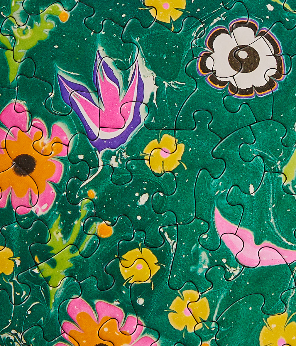 Our second mesmerizing collaboration with marbling artist Myfawnwy — this time in miniature! Get lost in her eyes as she stares back at you, a face among the flowers.