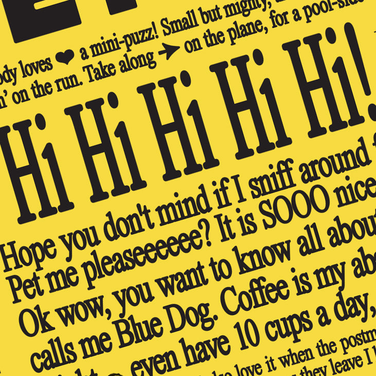 Hi Hi Hi Hi Hi! Read more about our extremely caffeinated friend, Blue Dog on the back of Gone Bonkers box!