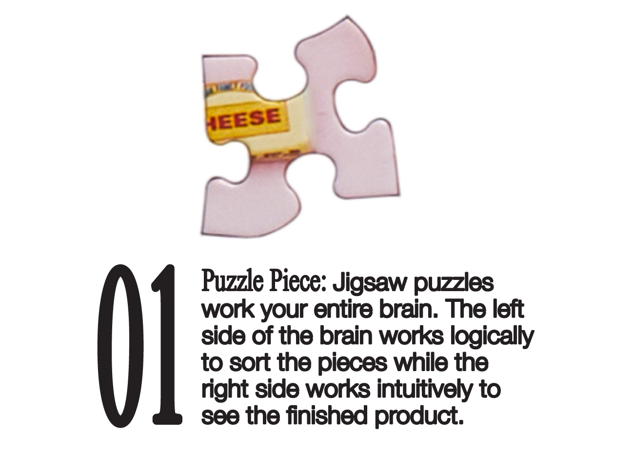 Our puzzle die lines are exclusive to Le Puzz and are random cut meaning every piece is different than the next! Detail above of the 1000 pc. die line to give you a sense of the kinds of pieces you might encounter. Our 1000 piece puzzles are extra large and not recommended for tiny tables!