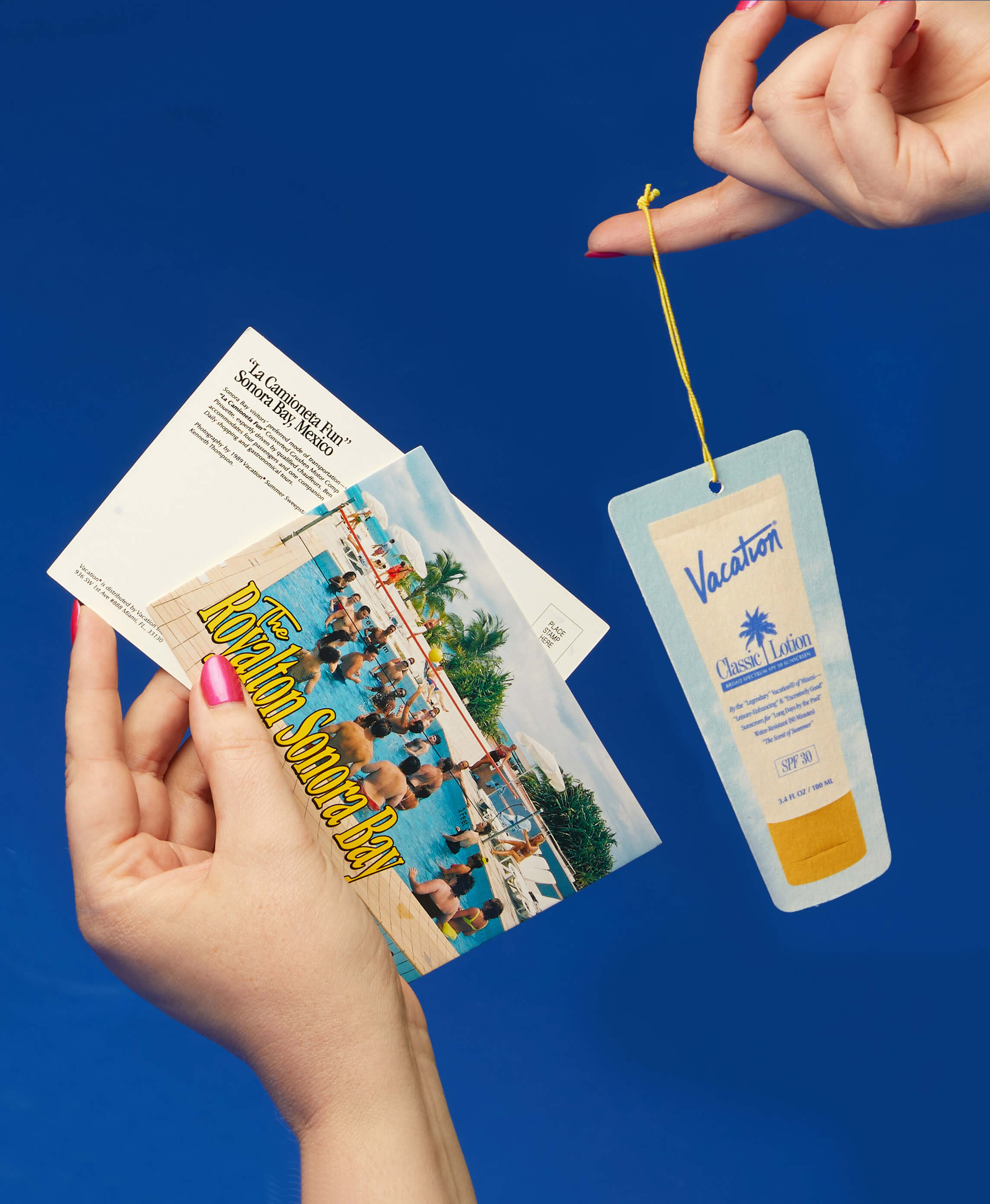 This 1000-piece, random-cut puzzle includes 5 Vacation® Postcards depicting iconic moments of leisure, a double-sided fold-out poster, and a Vacation® Classic Lotion Air Freshener to hang from your rearview mirror and enjoy the scent of sunscreen and swimming pool during all of your summer road trips.