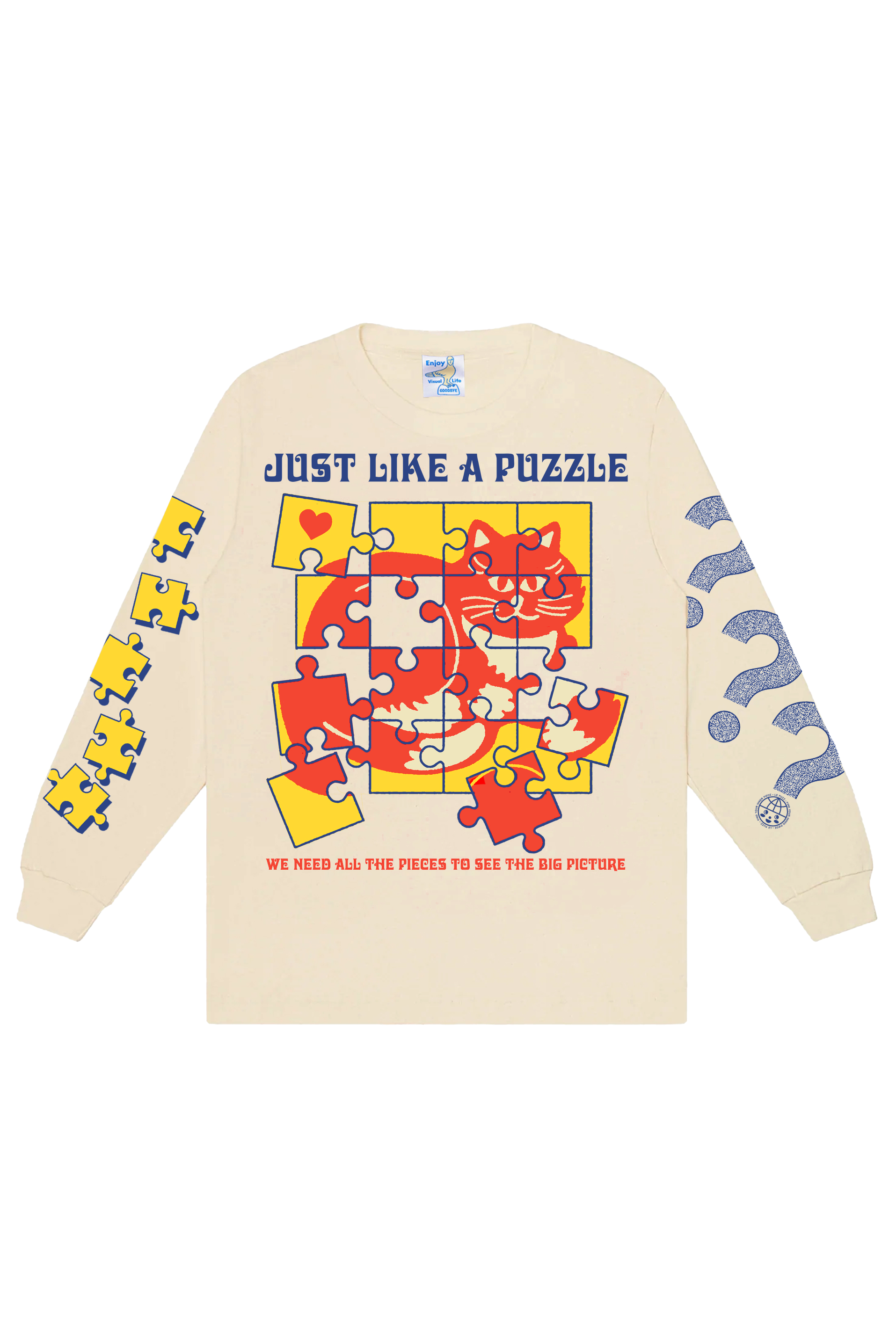 Our puzzle die lines are exclusive to Le Puzz and are random cut meaning every piece is different than the next! Detail above of the 1000 pc. die line to give you a sense of the kinds of pieces you might encounter. Our 1000 piece puzzles are extra large and not recommended for tiny tables!